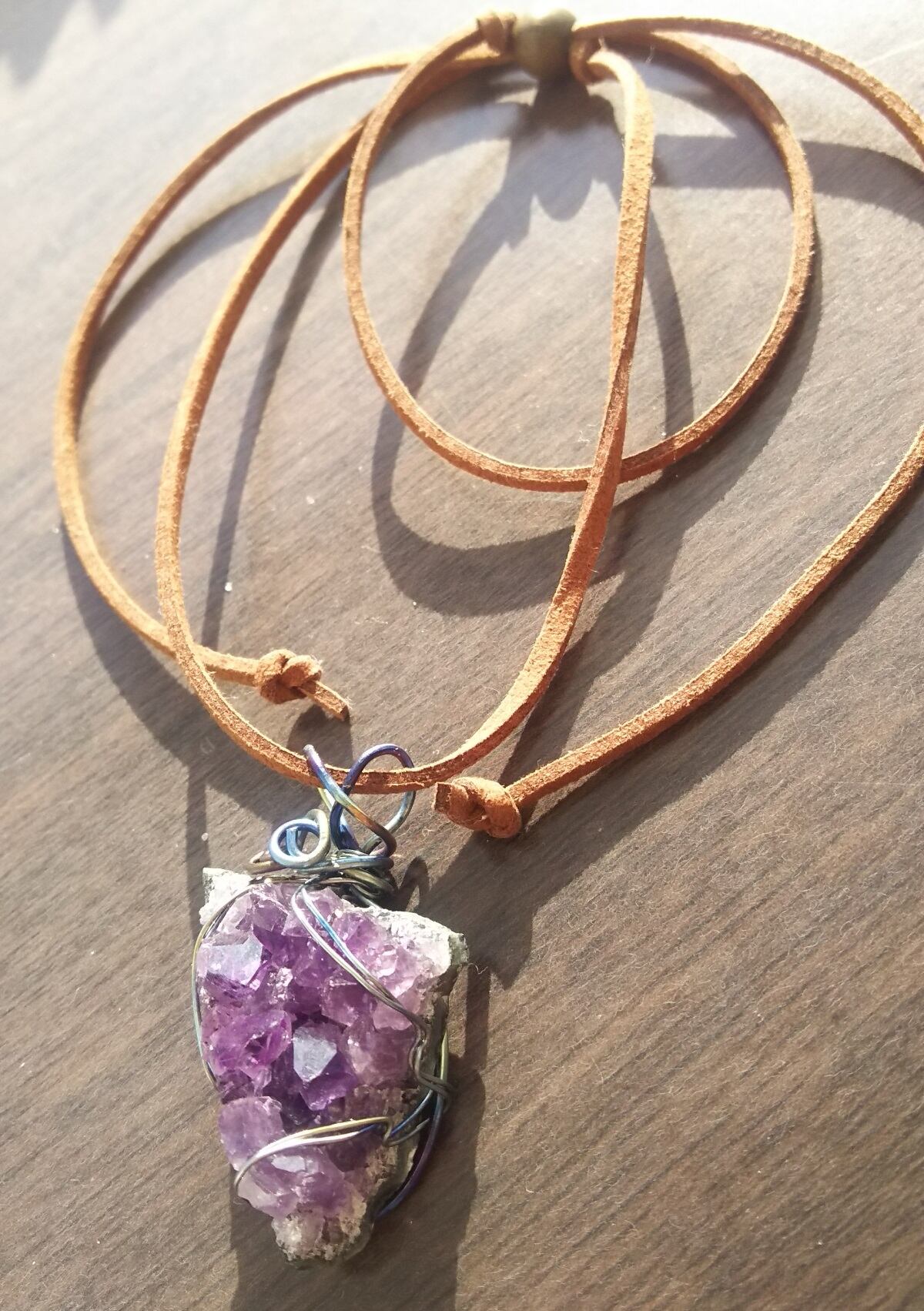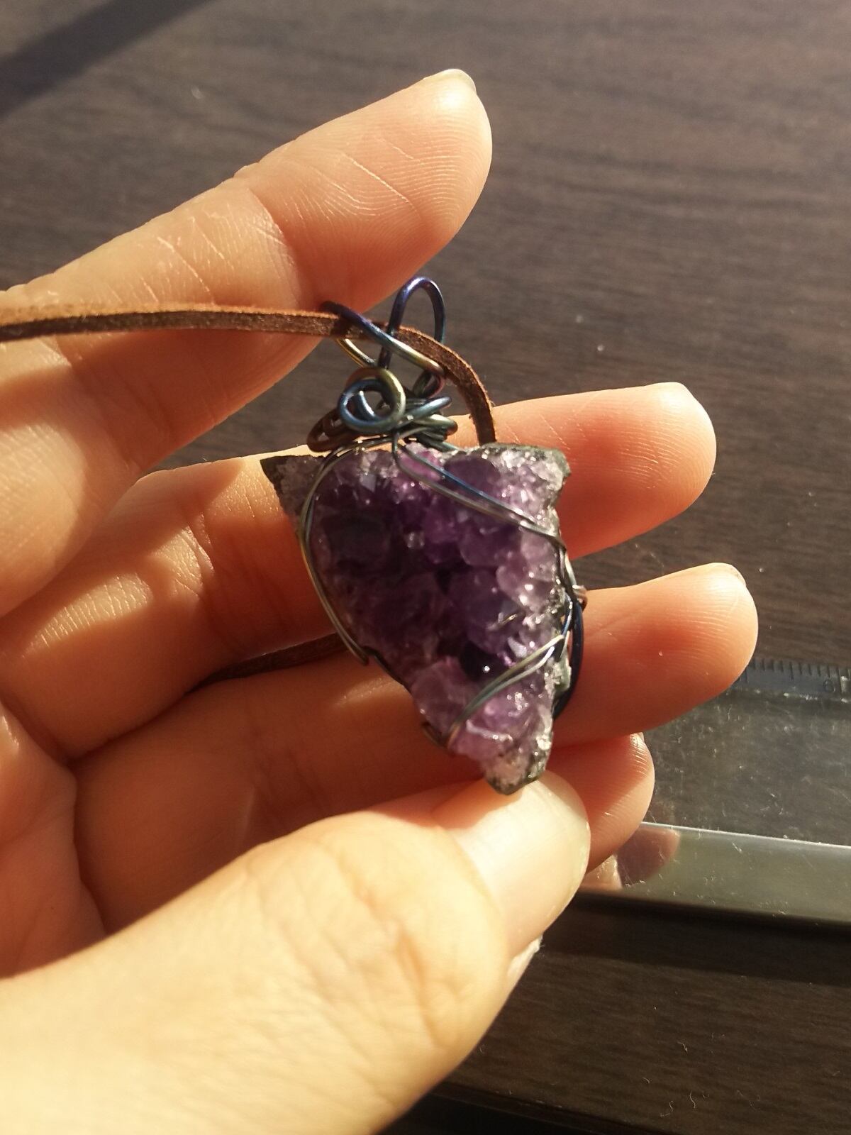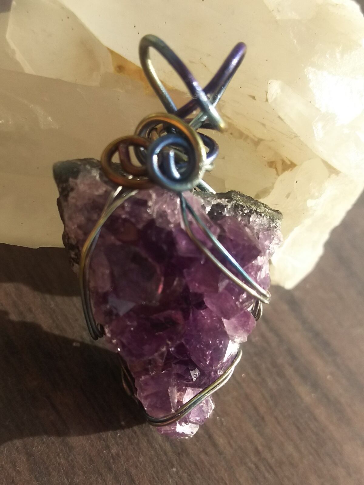 アメジストのミニクラスターをそのままチタンワイヤーでラッピングしました。