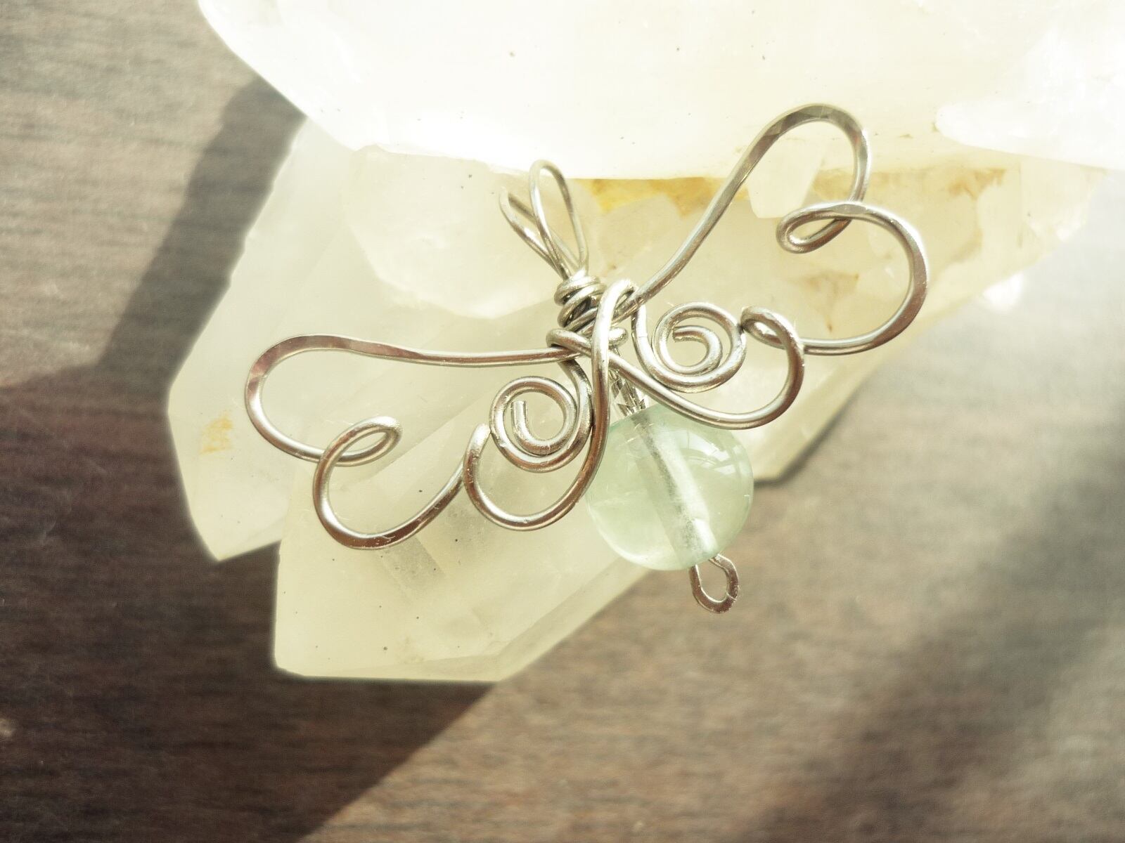 グリーンのフローライトを使ってチタンで仕上げた天使さんです。