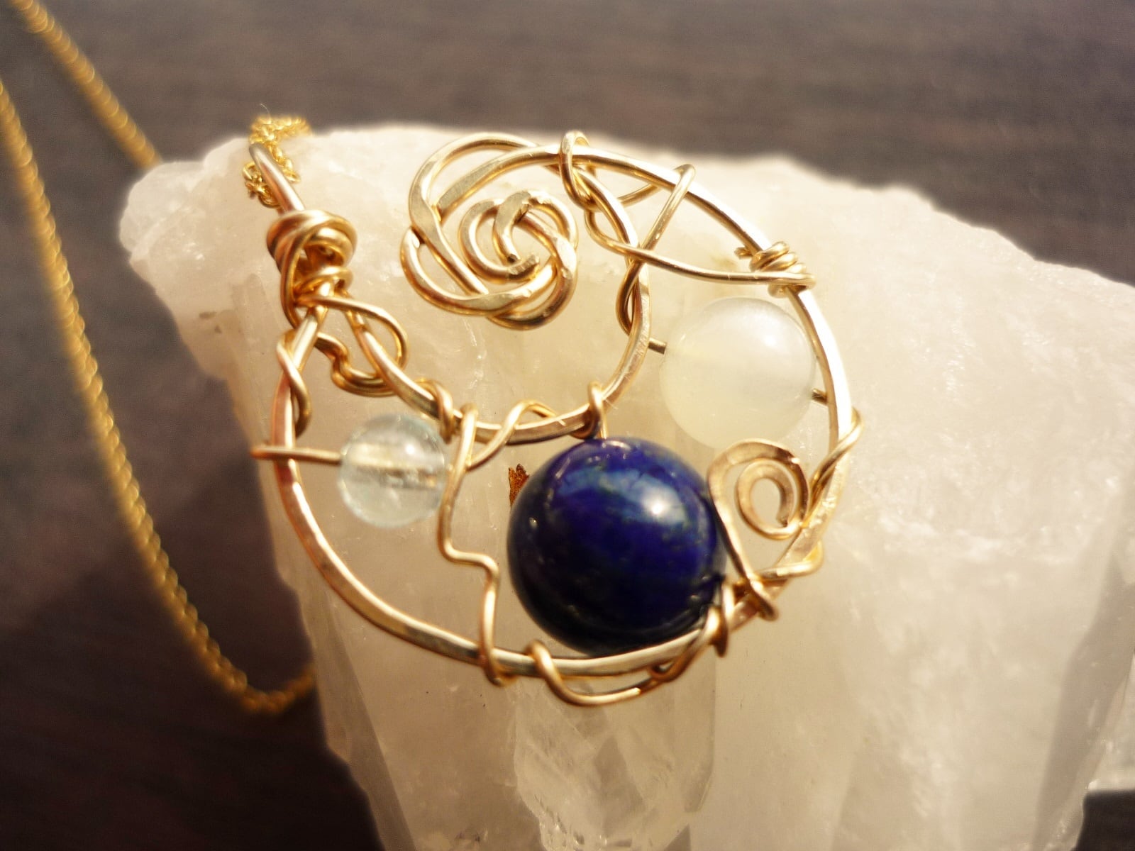 幸運を呼ぶラピスラズリに自分に必要なものを引き寄せるトパーズの組み合わせに、優しいエネルギーのムーンストーンが供わってあなたをサポートしてくれます。
