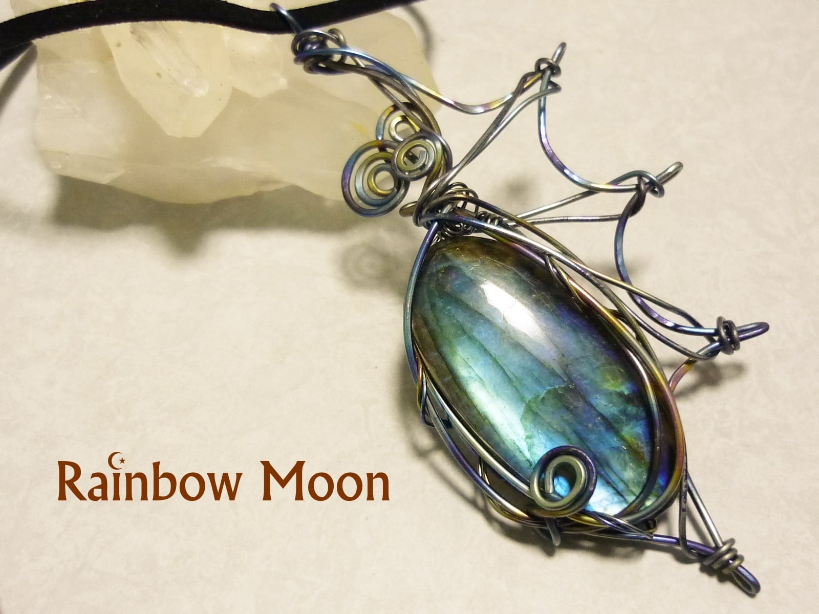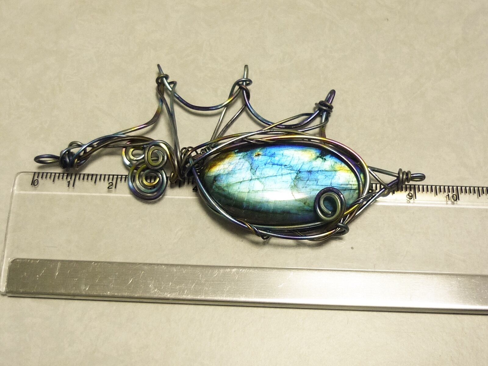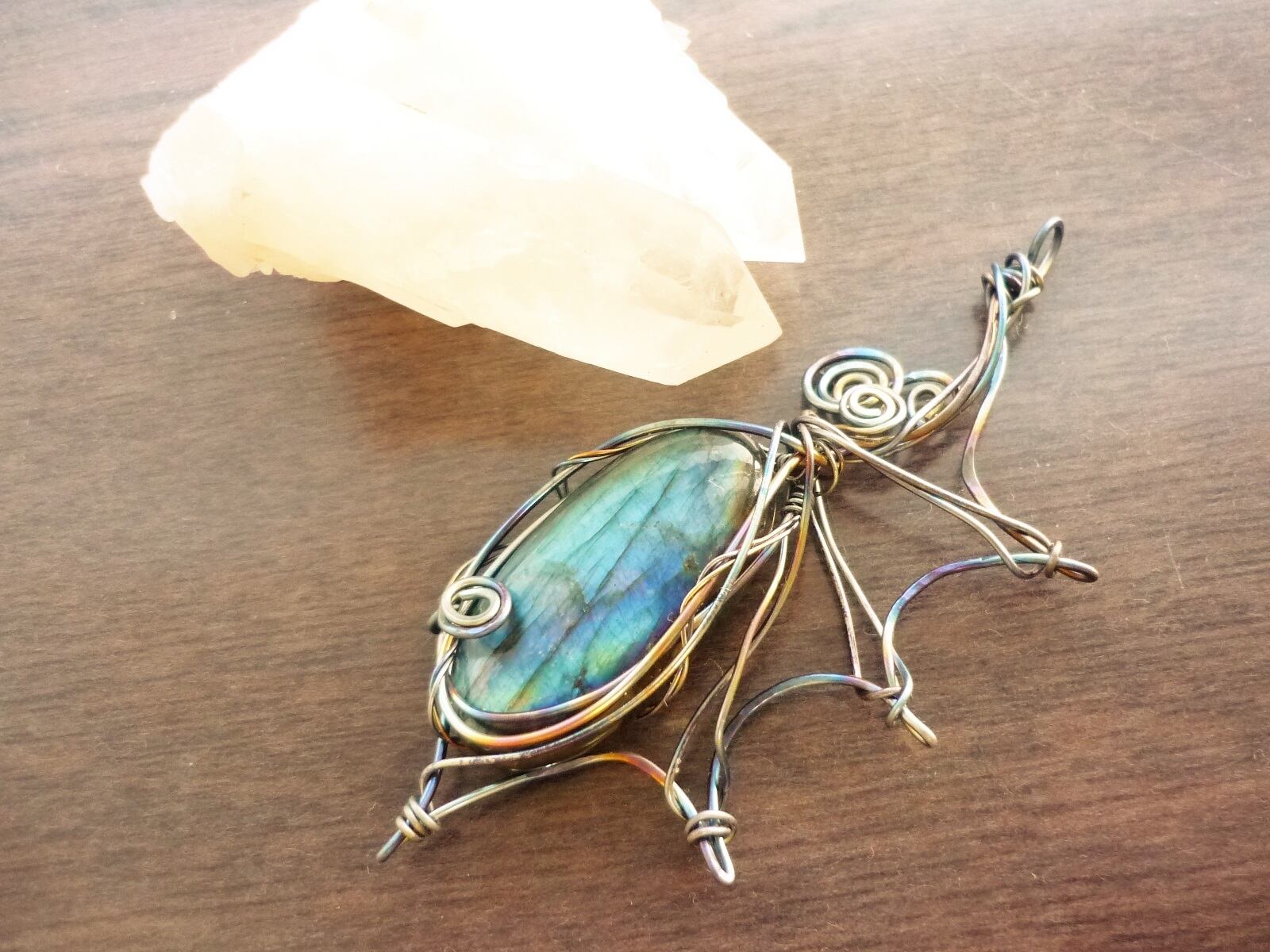 深い青い色のラブラドライトに竜の翼を付けてみました。
