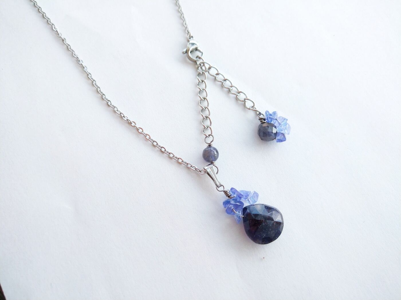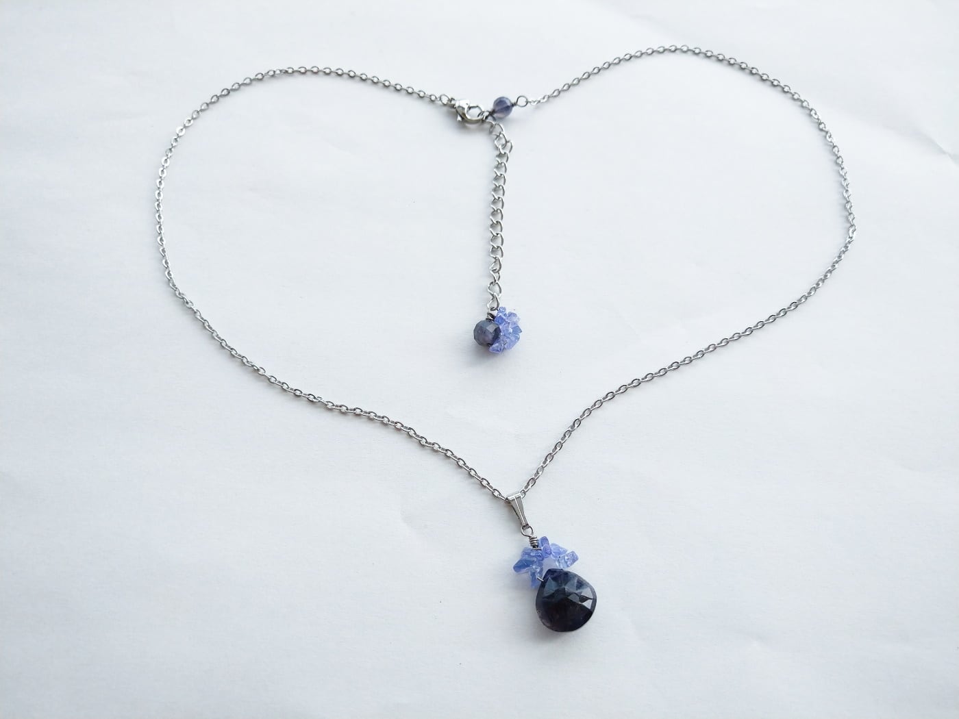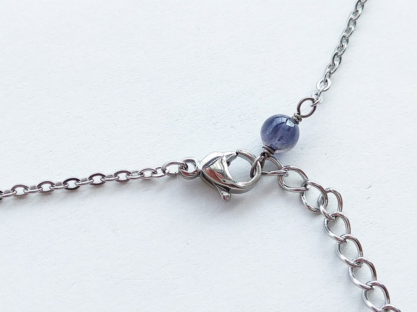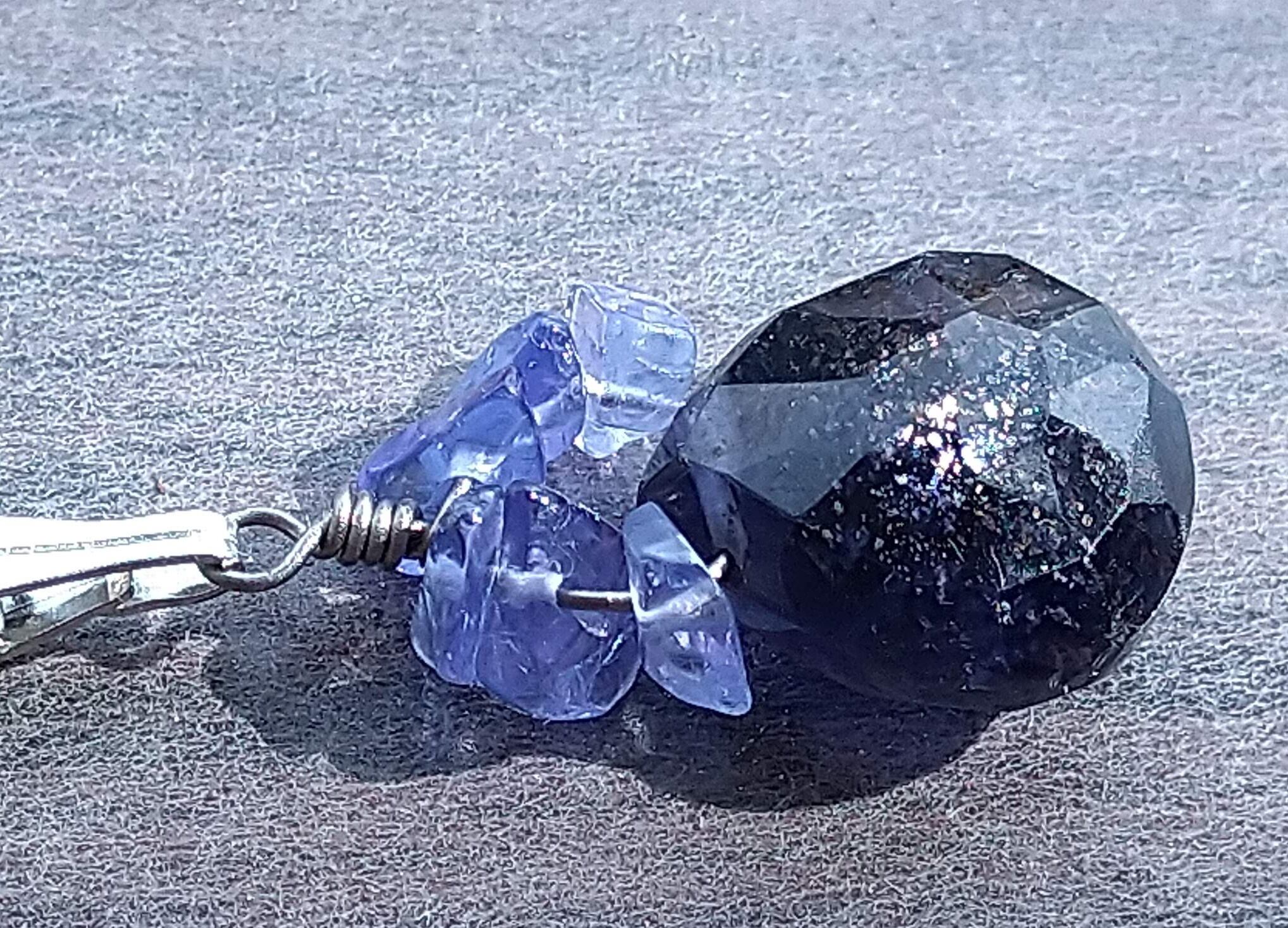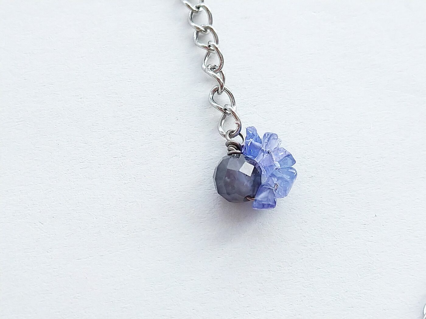 アジャスターの先のチャームにもアイオライトとタンザナイトを使用しました。