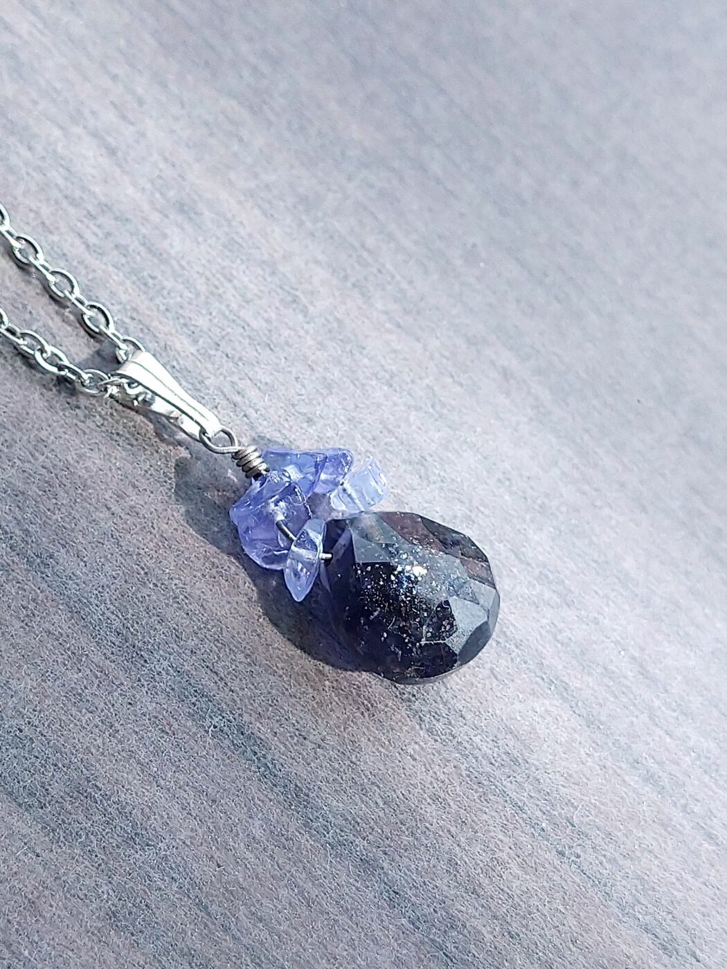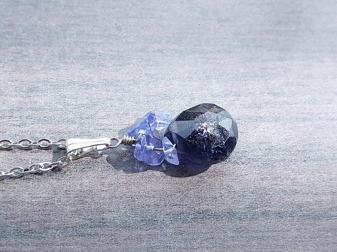 夜の色のしずくのアイオライトには星空があるようにキラキラします。