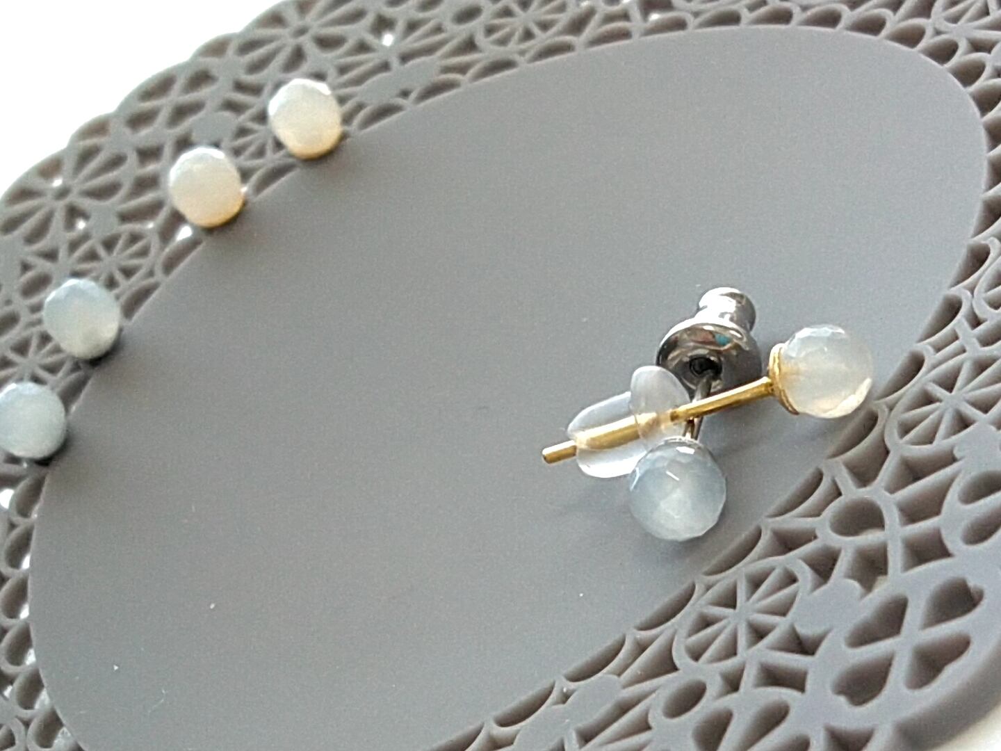 ※接着剤で石を金属台座orシリコンイヤリングに貼付けております。入浴などのお水に浸るようなシーンでのご使用はお控えください。