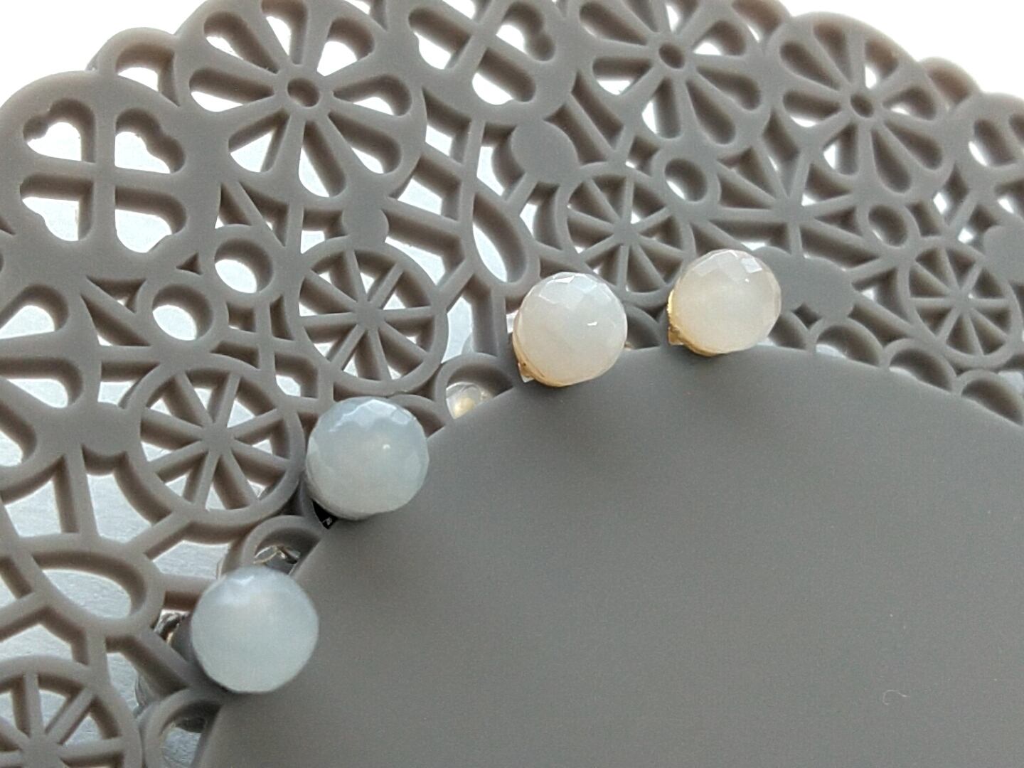 ホワイトムーンストーンの丸カットを使用したシンプルなピアスです。