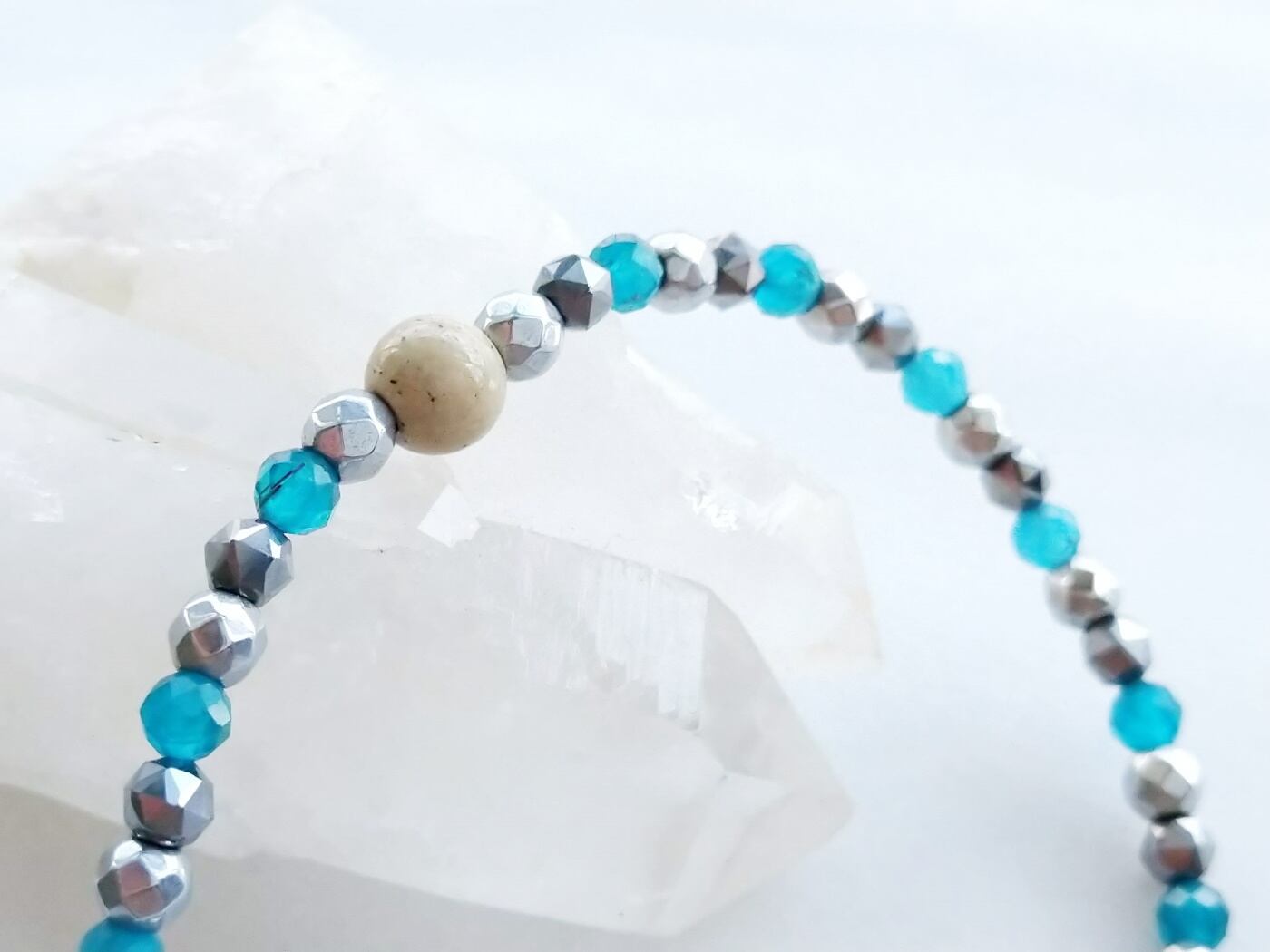 北投石は放射線、テラヘルツ鉱石は振動するテラヘルツ波、磁気ヘマタイトは磁力、アパタイトも放射線と…すべて何かしら出てる石ばかりで組みました。
