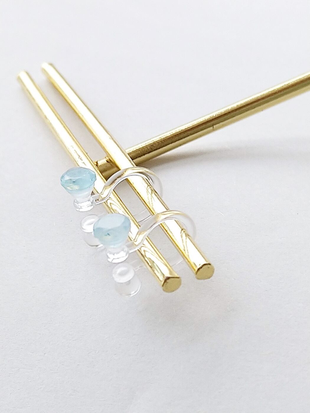 ※接着剤で石を金属台座orシリコンイヤリングに貼付けております。入浴などのお水に浸るようなシーンでのご使用はお控えください。