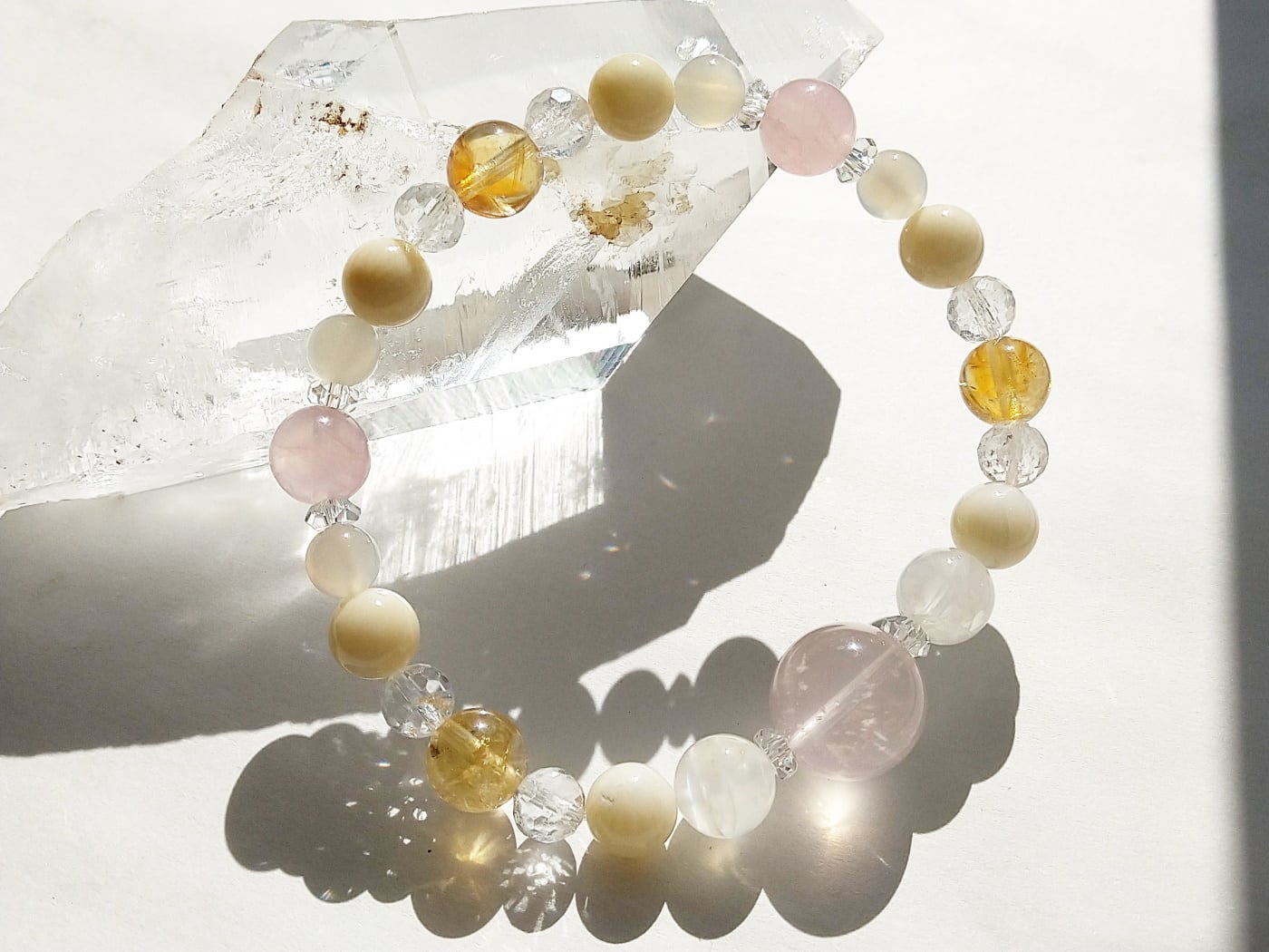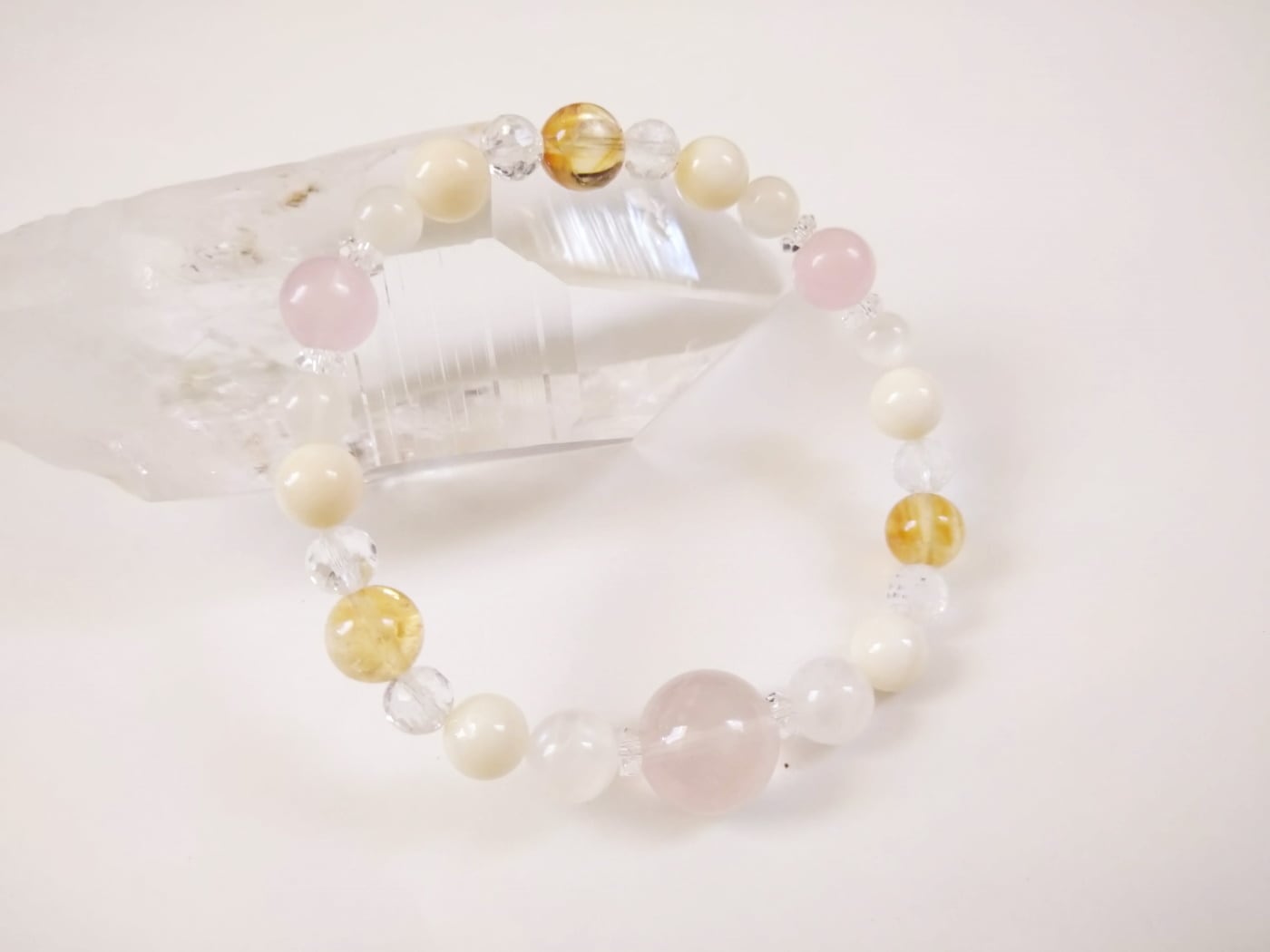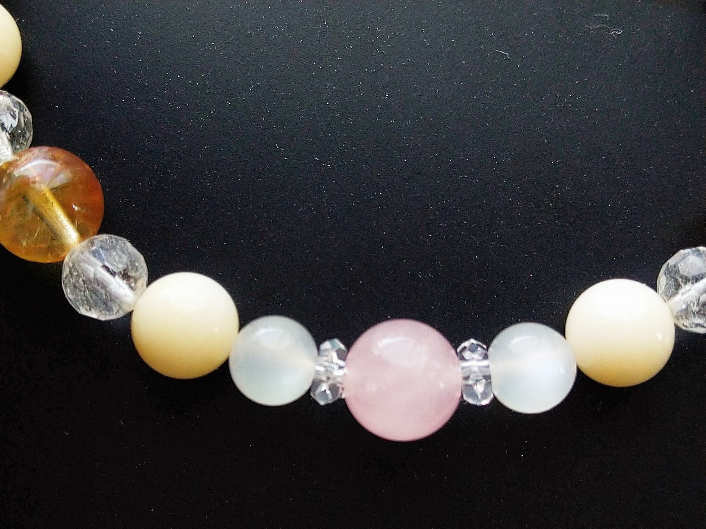 スターローズクォーツと11月の誕生石を組み合わせた可愛い系ブレスレットです。