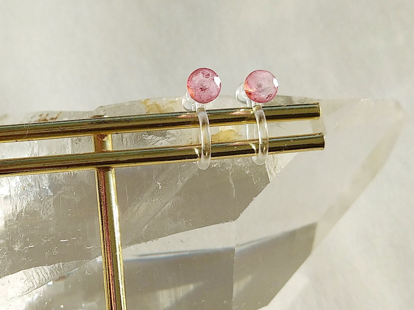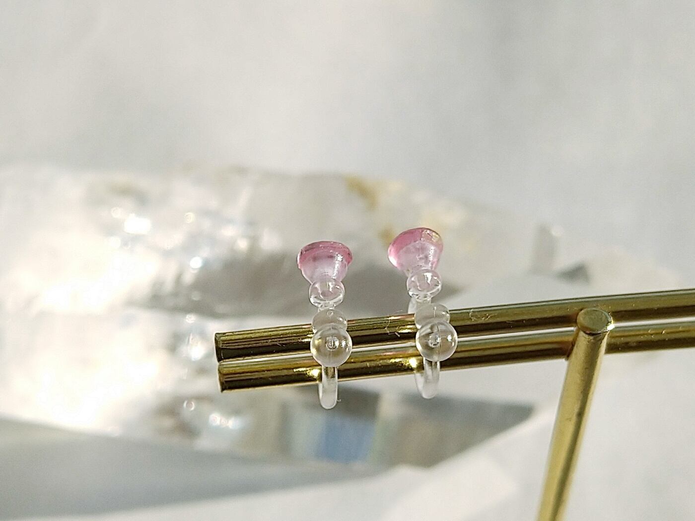 透明度の高い宝石質のピンクのトパーズのノンホールピアス(イヤリング)です。