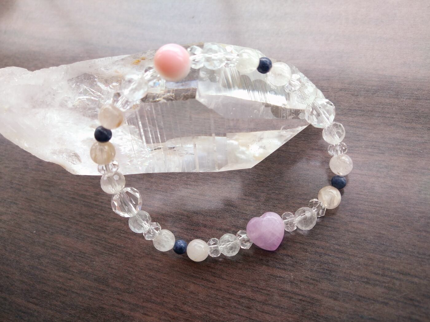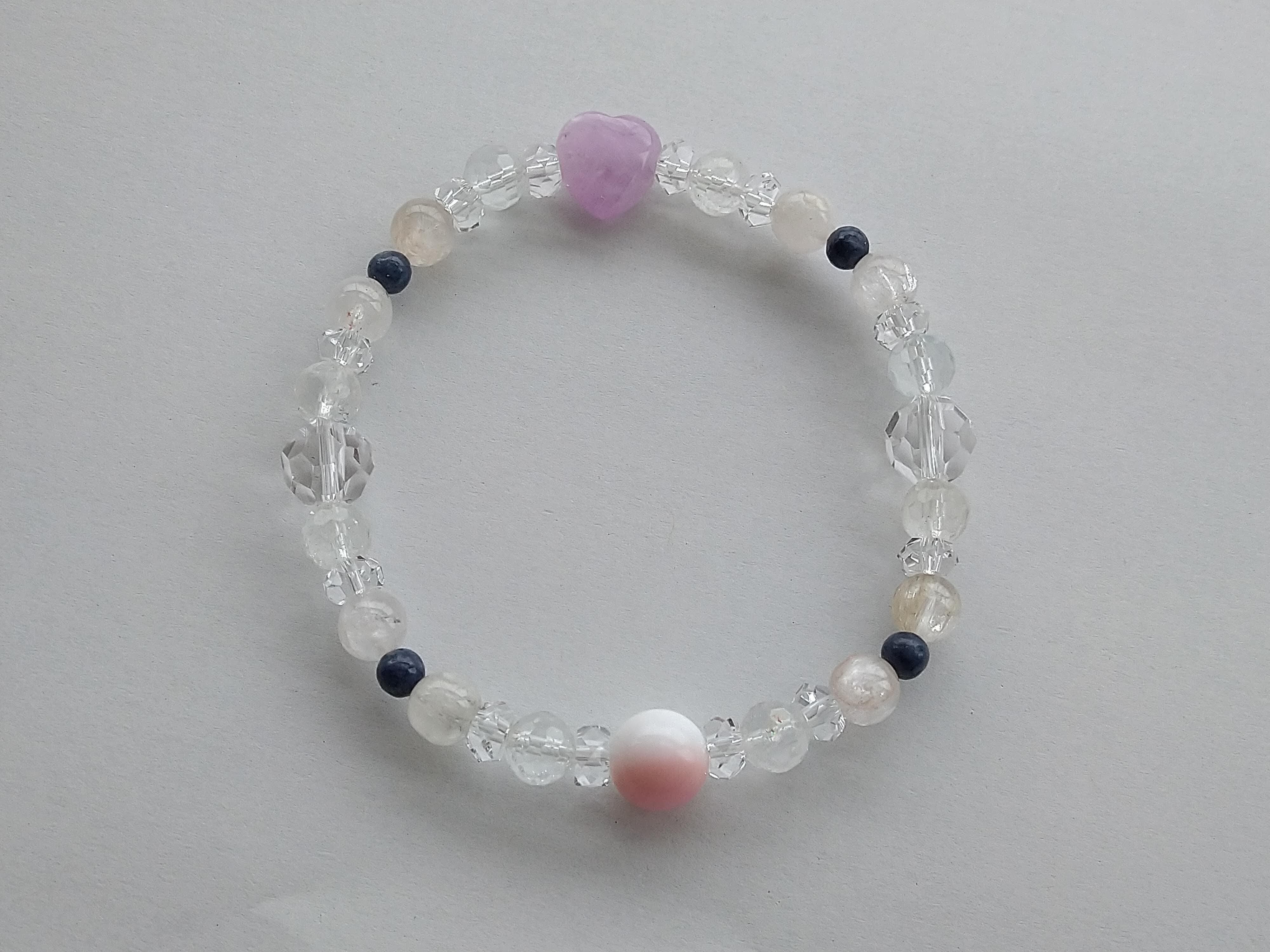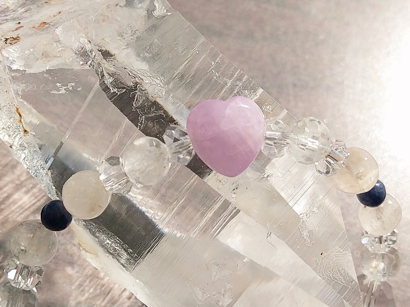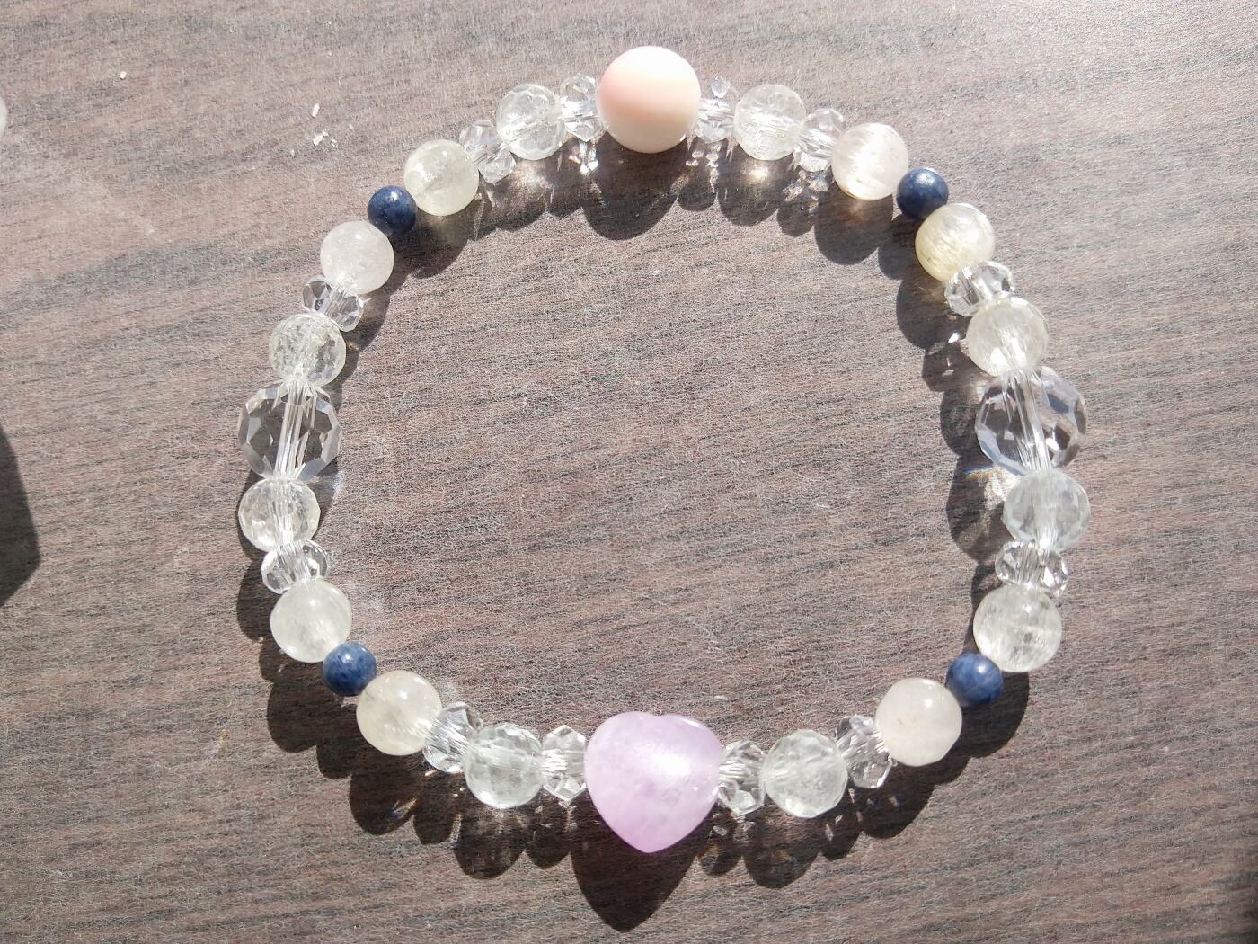 可愛らしいハートのクンツァイトを使用したブレスレットです。