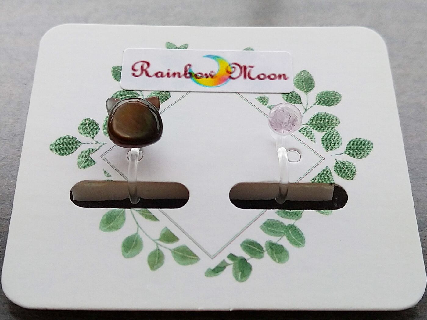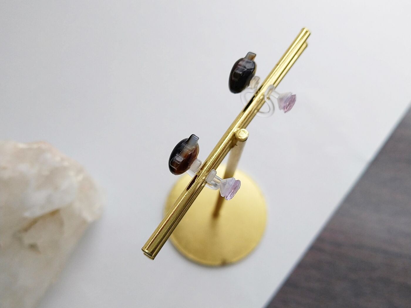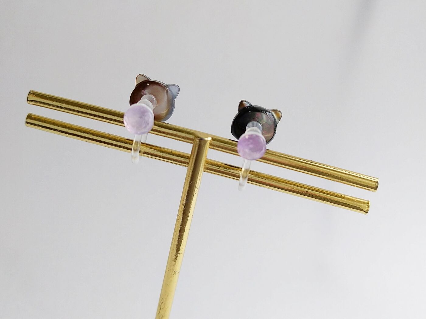【2月誕生石】黒猫とアメジストリバーシブルノンホールピアス ER08