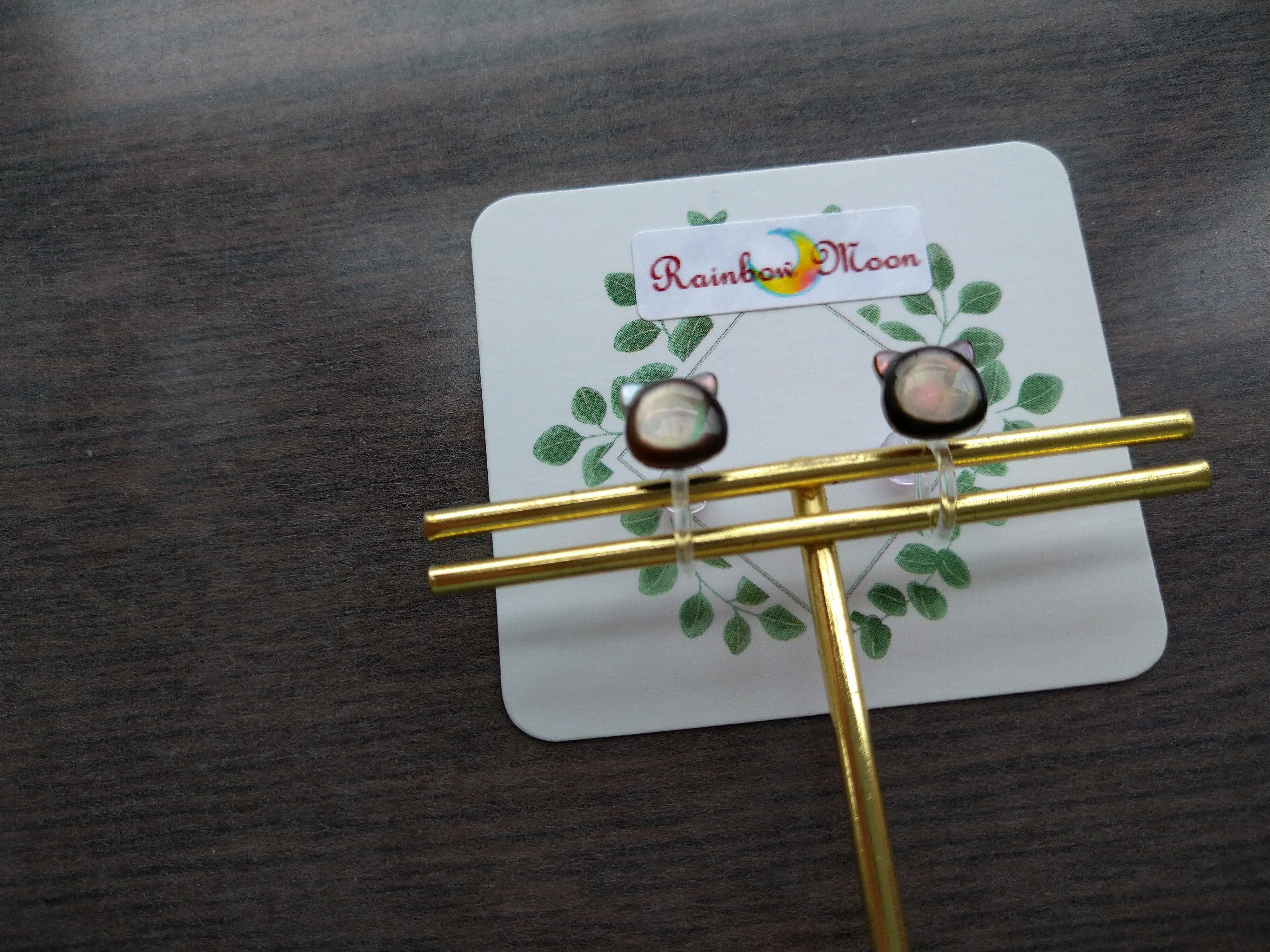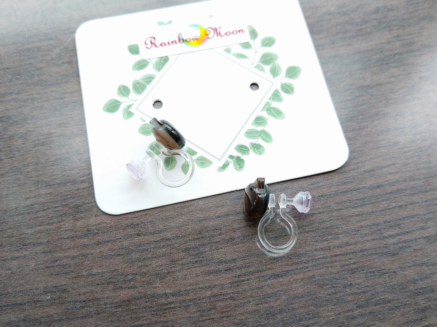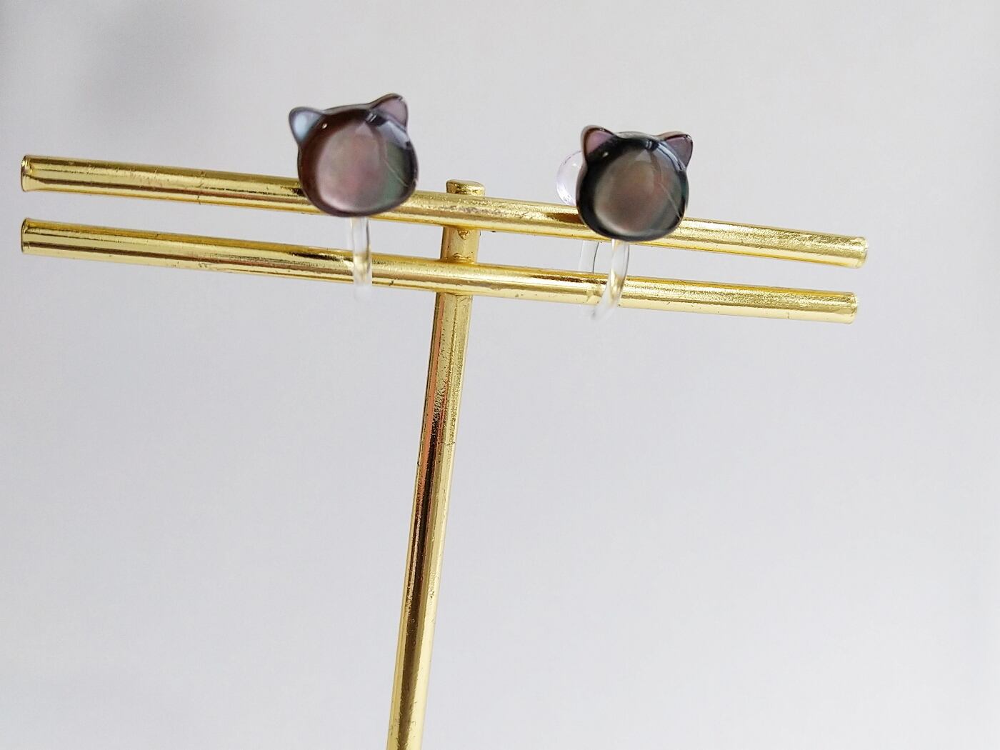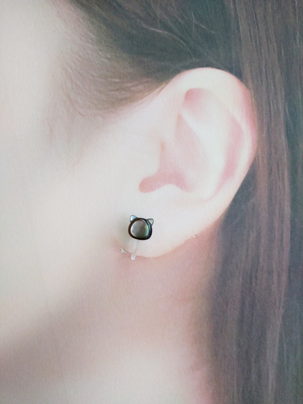 黒猫のブラックシェルを使用したノンホールピアス(イヤリング)です。